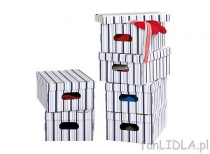 Nabídka v Lidlu závisí na aktuální akci, ale mívají plastové úložné krabice a skvělé dózy s klipy do kuchyně. Já osobně si pravidelně hlídám nabídku skládacích papírových krabic – prodávají se v balení po 6 asi za 120 Kč (vycházejí levněji, než papírovky Ikea) – a mají je v opravdu pěkných dekorech.